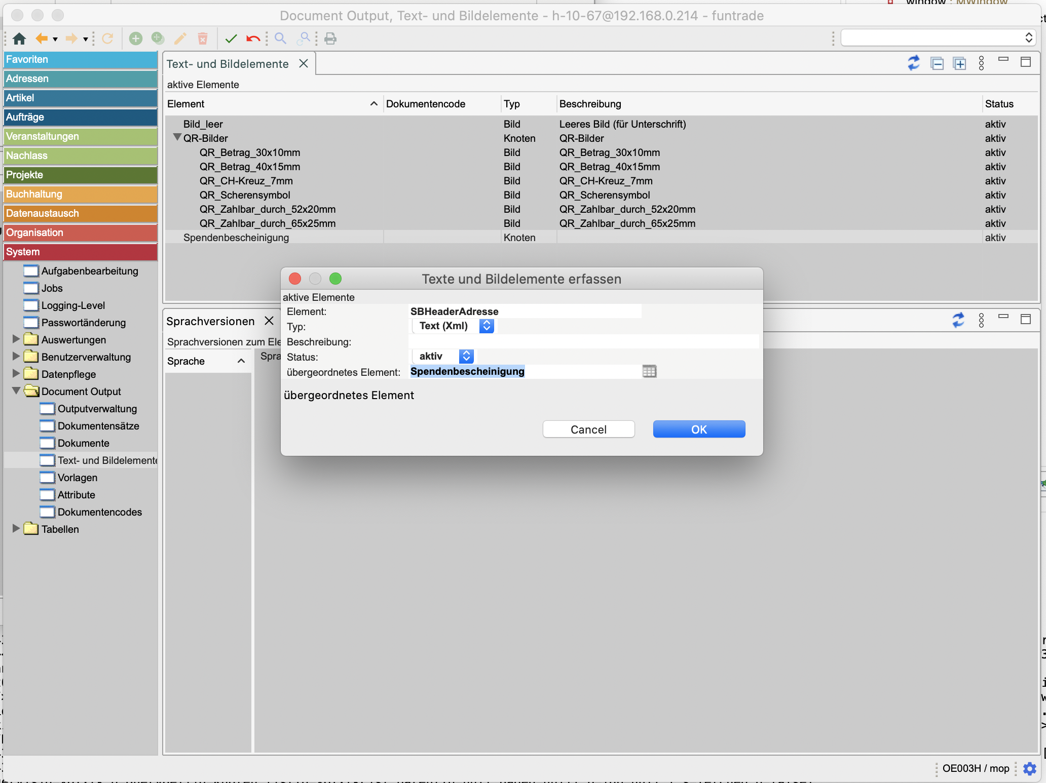 Im System/Dokument Output/Dokumente wird ein Knoten erfasst, wo später alle Dokumente für Spendenbescheinigungen gespeichert werden (Bilder 1-3)