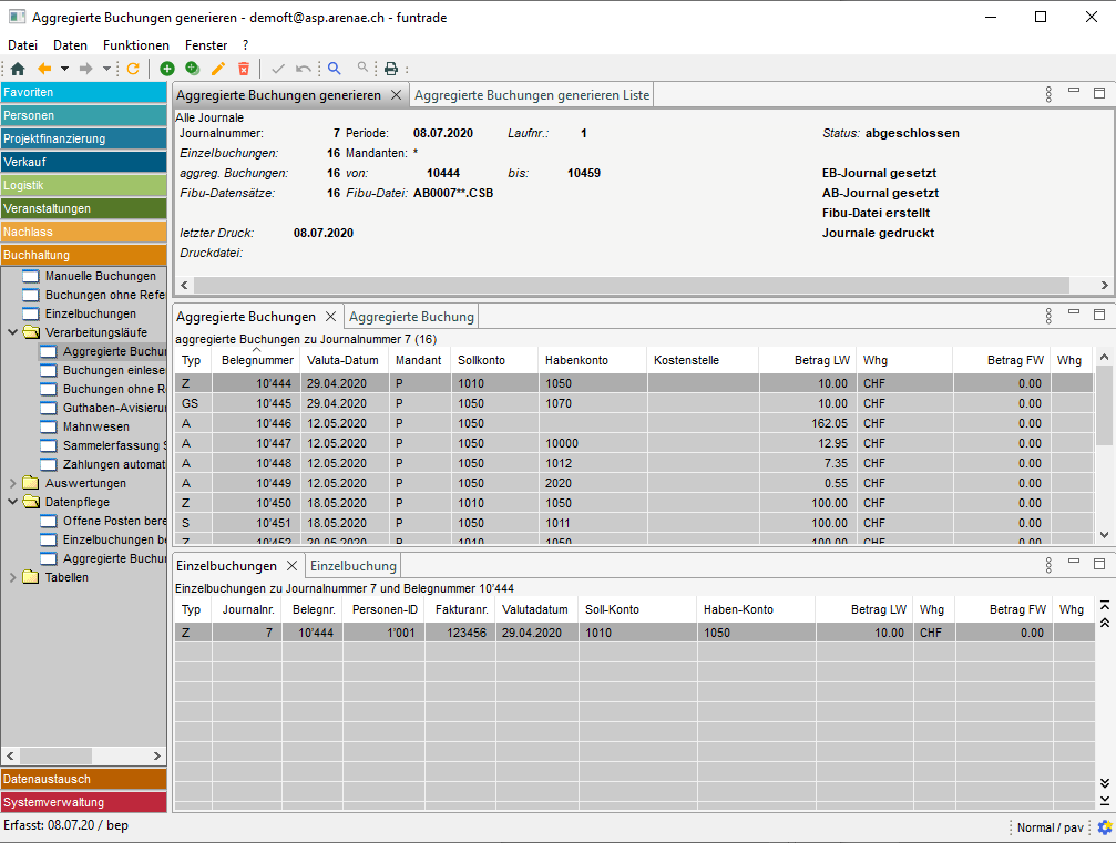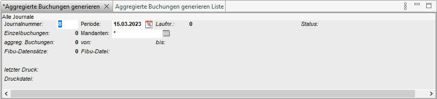 Journalnummer: Die Journalnummer der Aggregierung wird vom System automatisch vergeben. Bei der Aufbereitung sind die aufbereitete Einzelbuchungen mit dieser Nummer markiert.