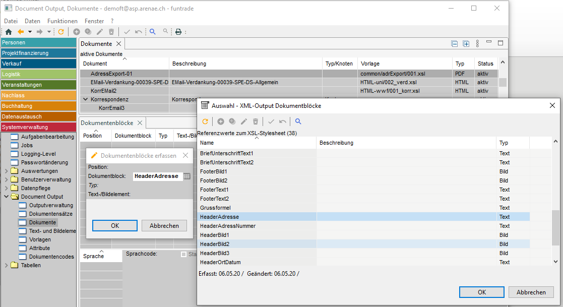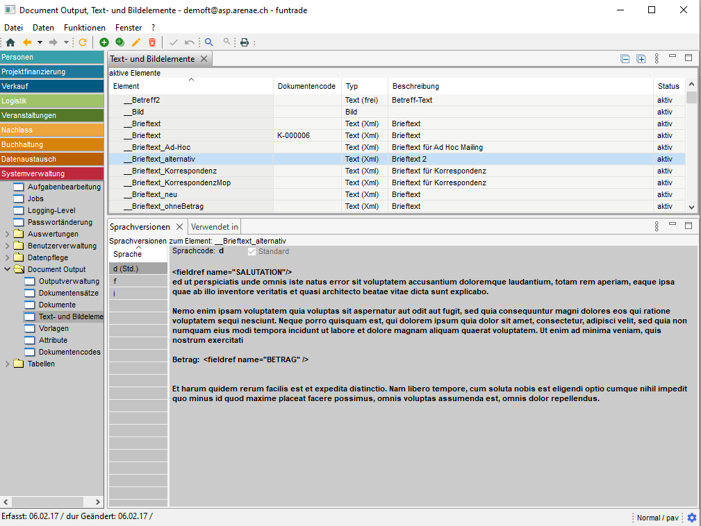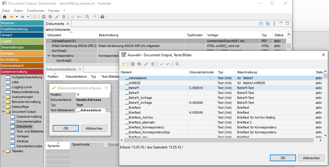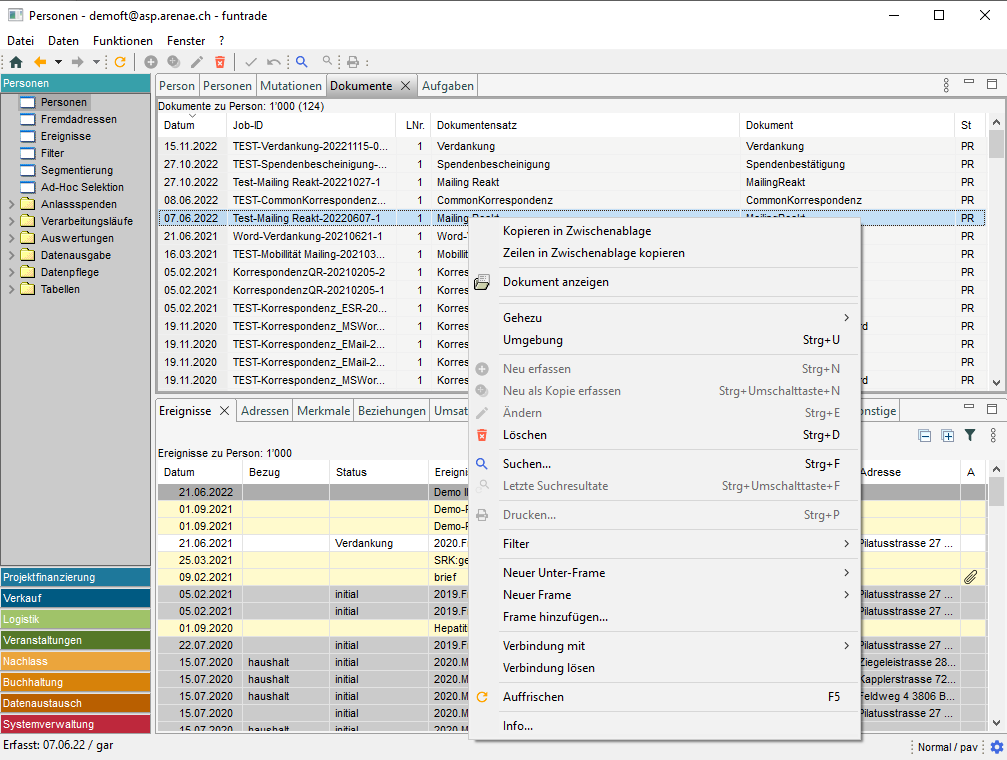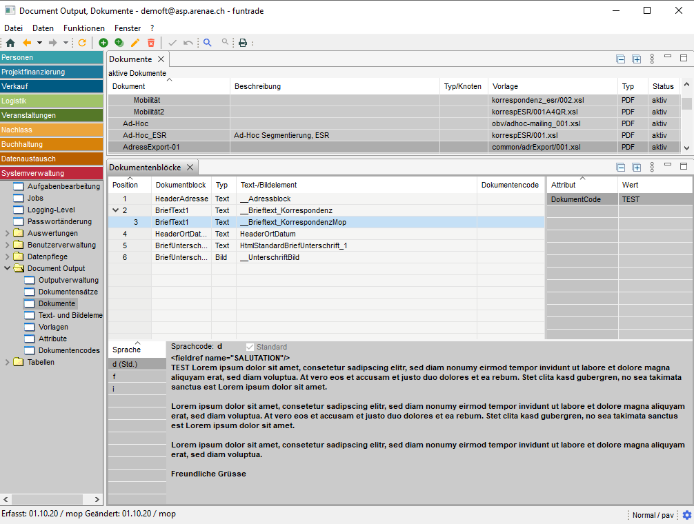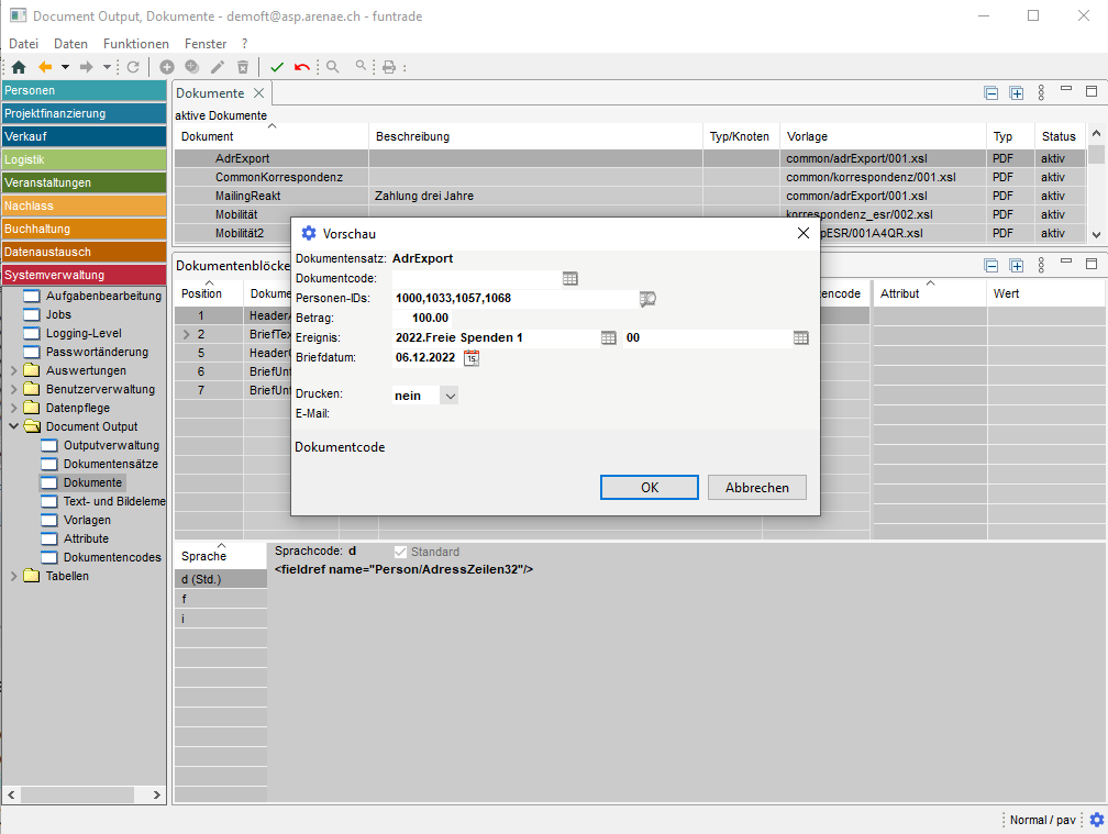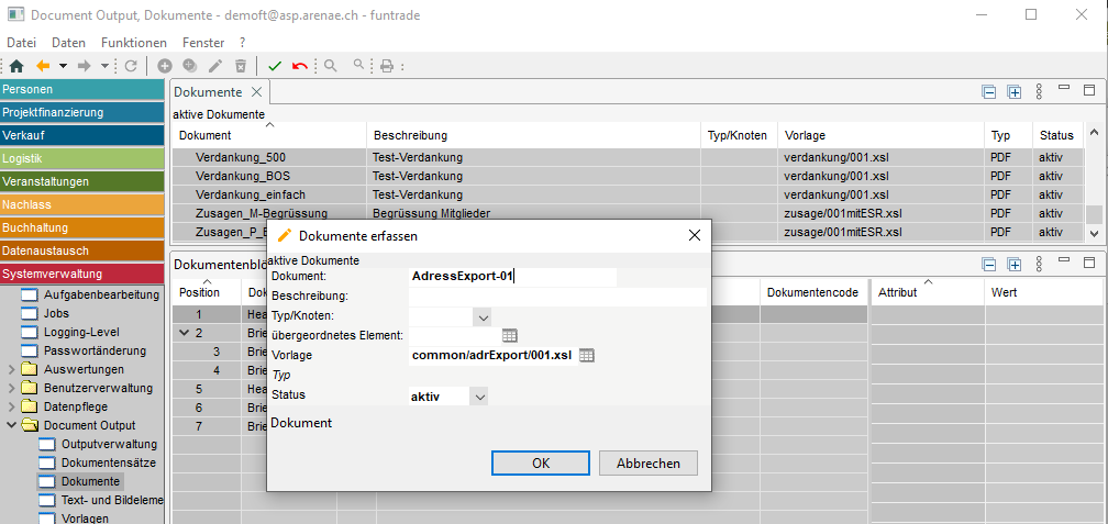 Im funtrade-System ist es möglich, personalisierte Dokumente in verschiedenen Funktionsbereichen für verschiedene Zwecke zu erstellen: