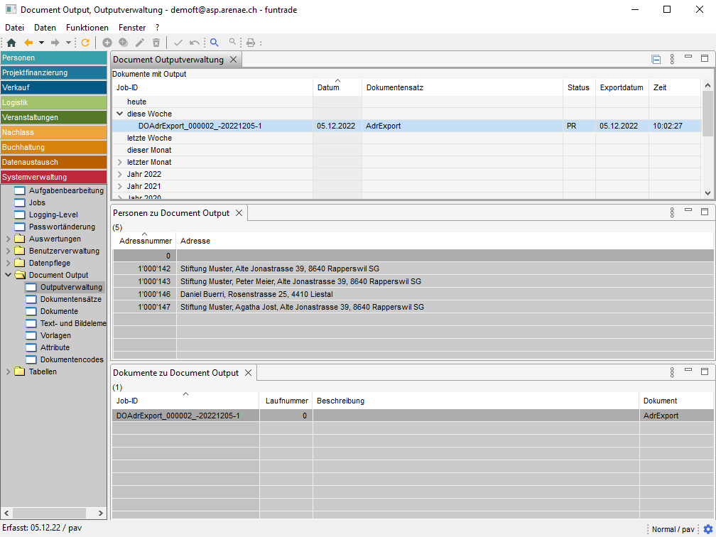 Alle erstellten Dokumente sind in der Ansicht "Systemverwaltung/Document Output/Outputverwaltung" zu finden.