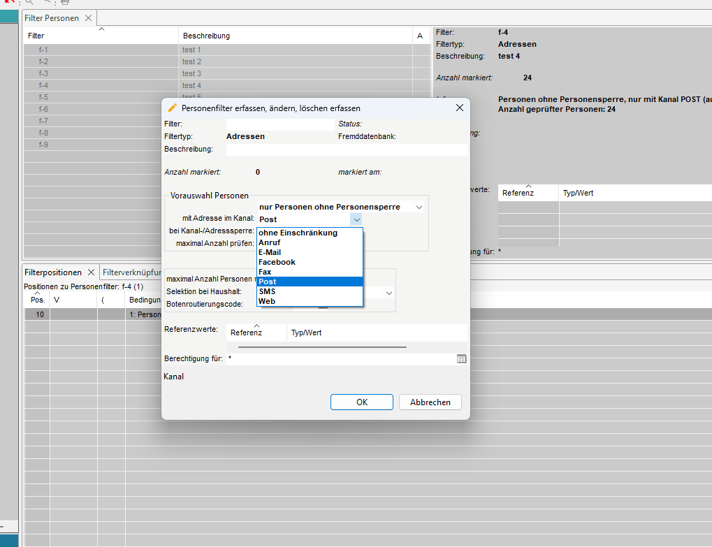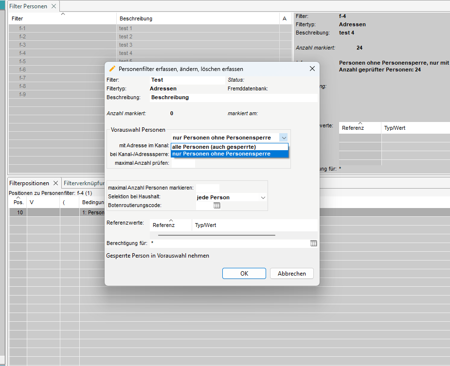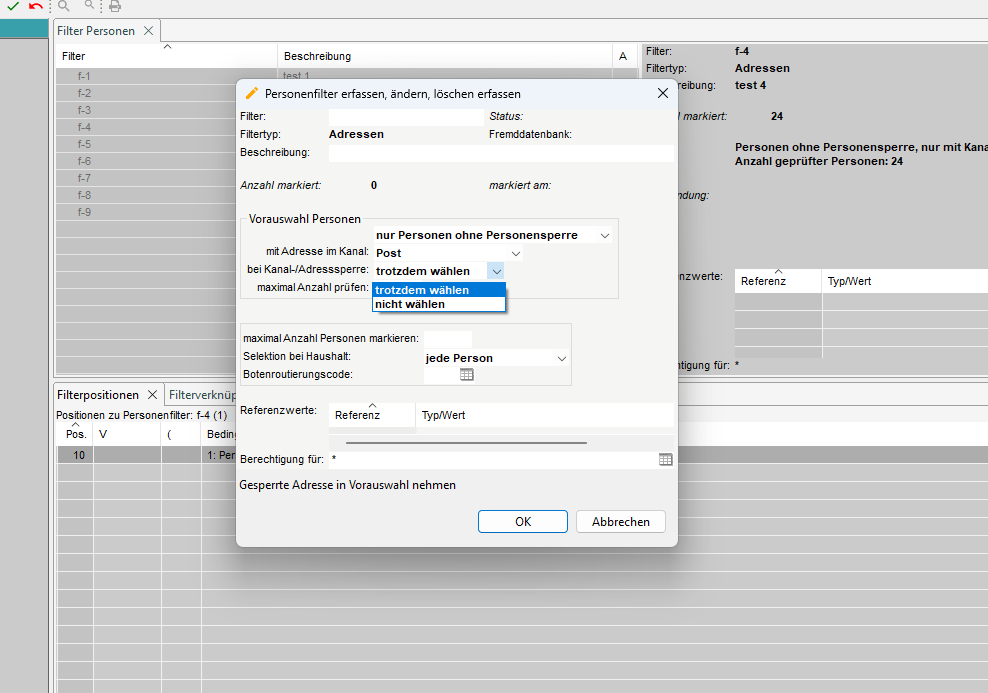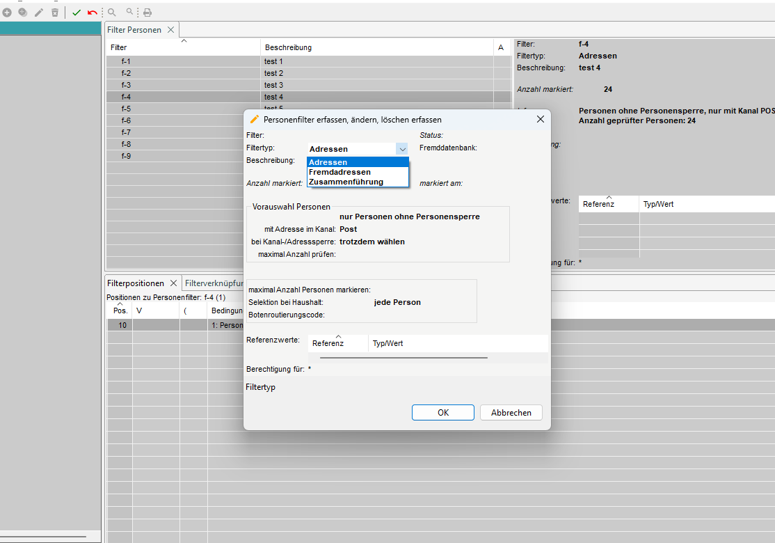 5.2 Filterpositionen erfassen für Filtertyp Adressen und Fremdadressen