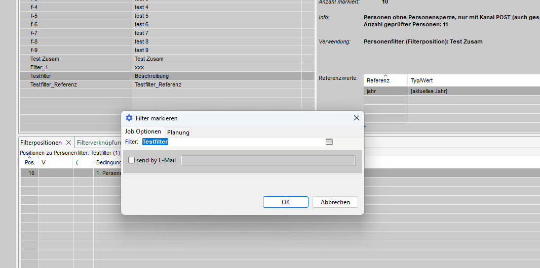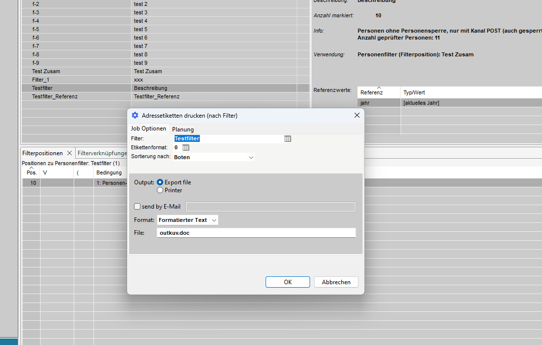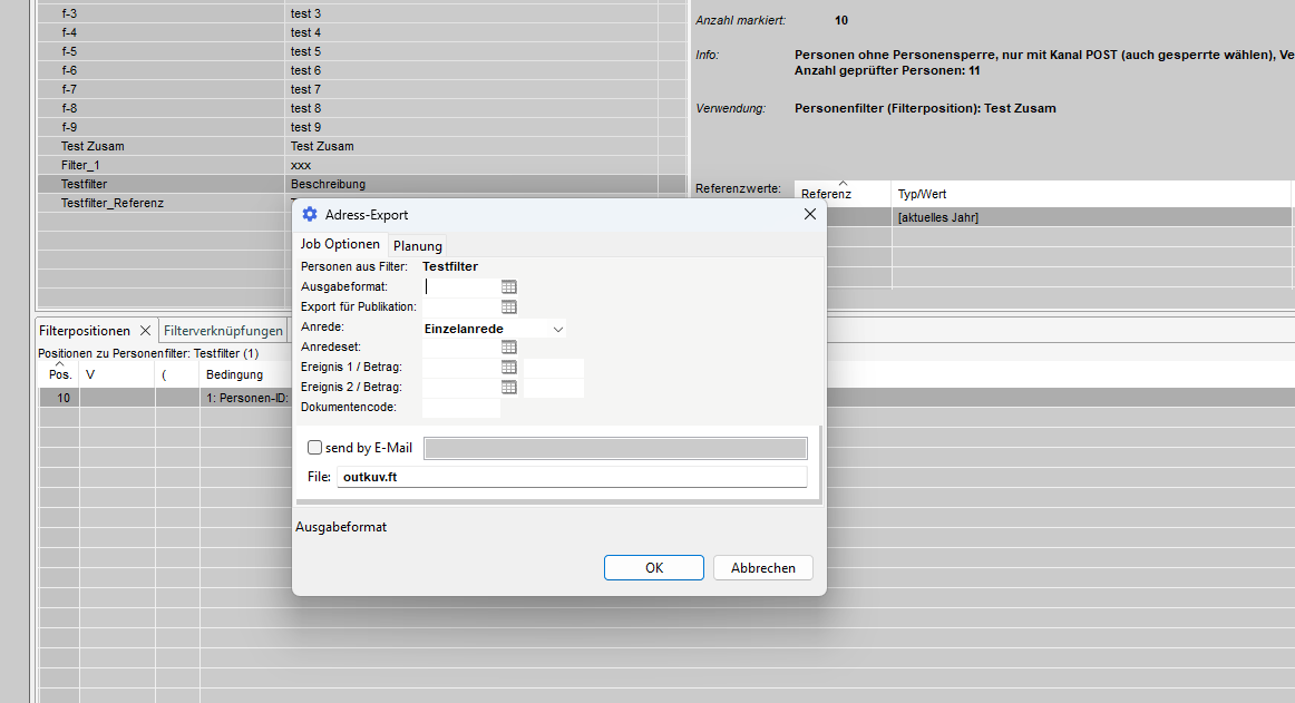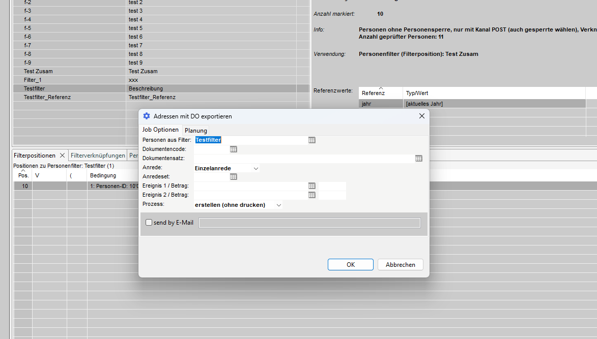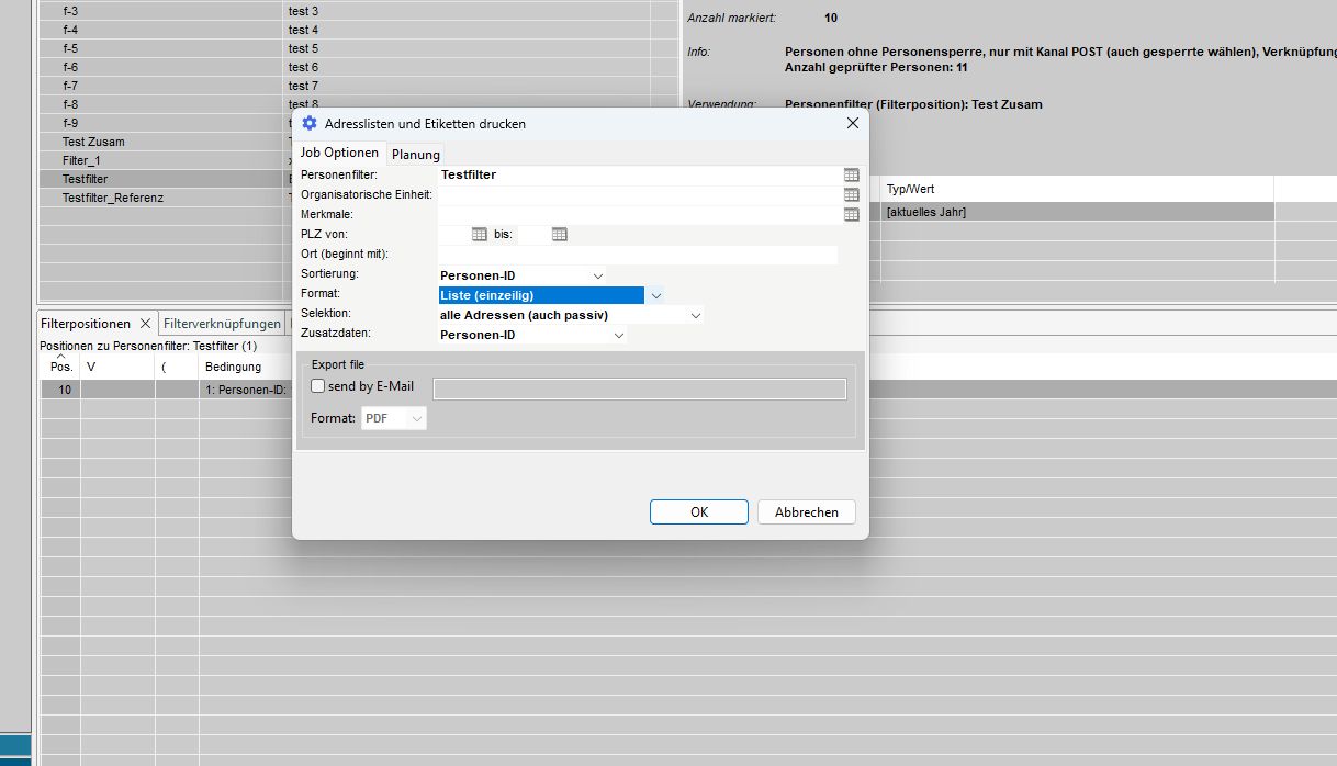 In diesem Abschnitt können wir eine Vorauswahl der Adressen treffen, aus denen wir mit dem Filter auswählen wollen.
