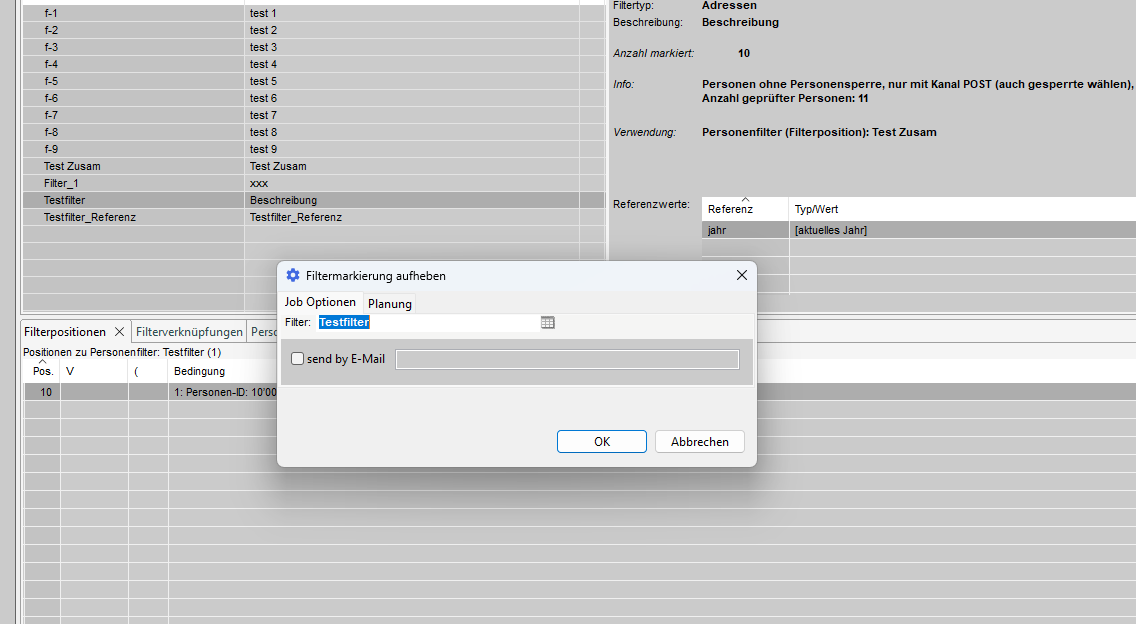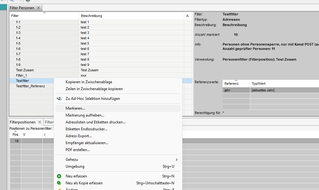 Mit Hilfe von Filterpositionen können wir die Adressen, die mit einem bestimmten Filter ausgewählt werden sollen, genauer definieren und eingrenzen.