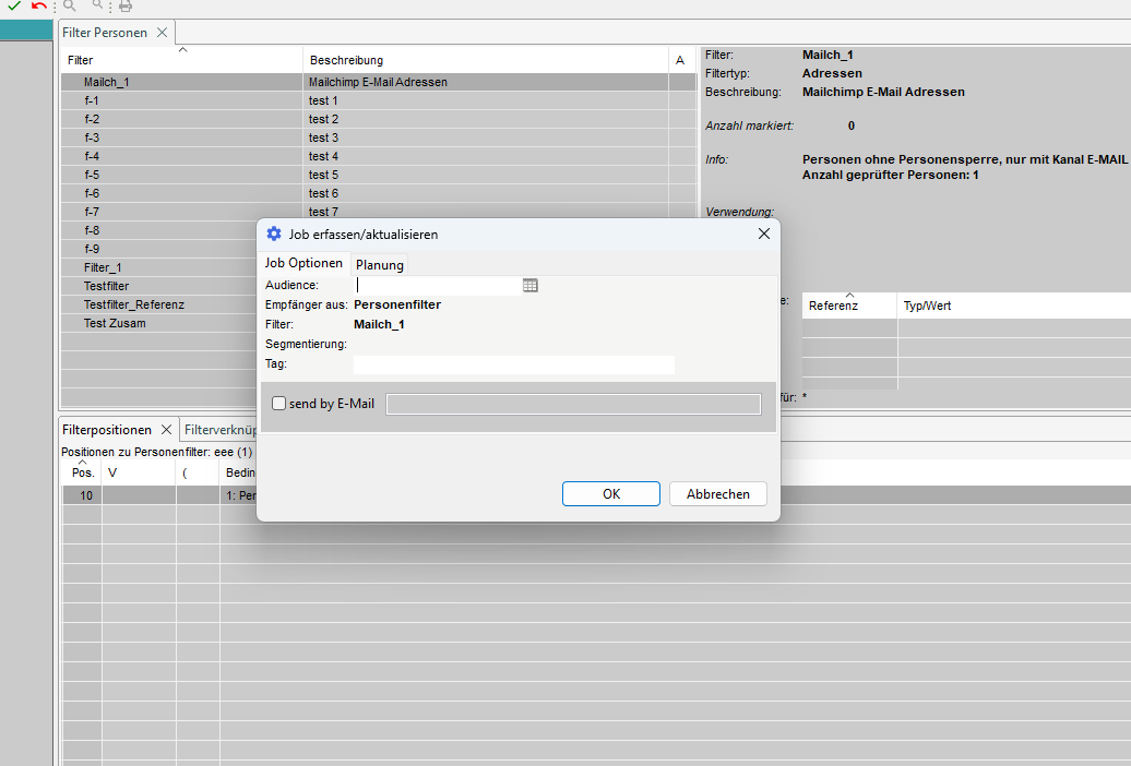 9.6 Filterposition für Segment Zweck Mailchimp erfassen