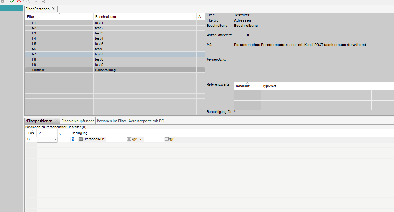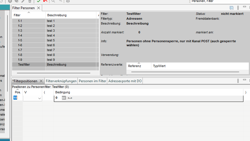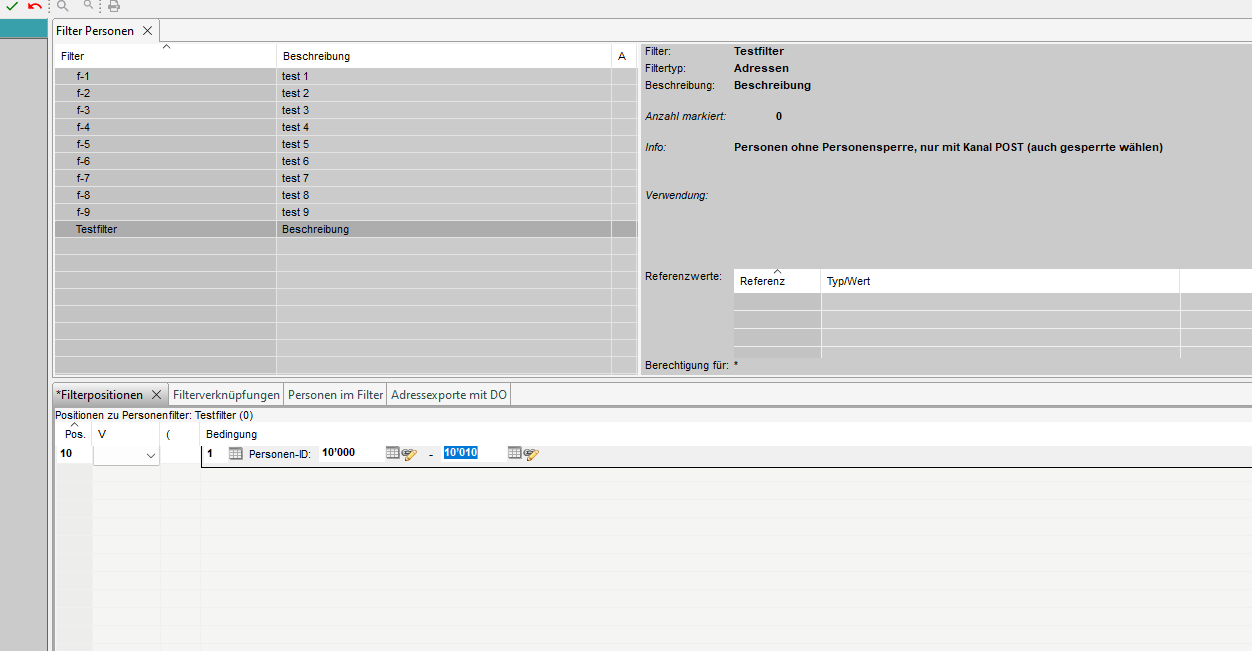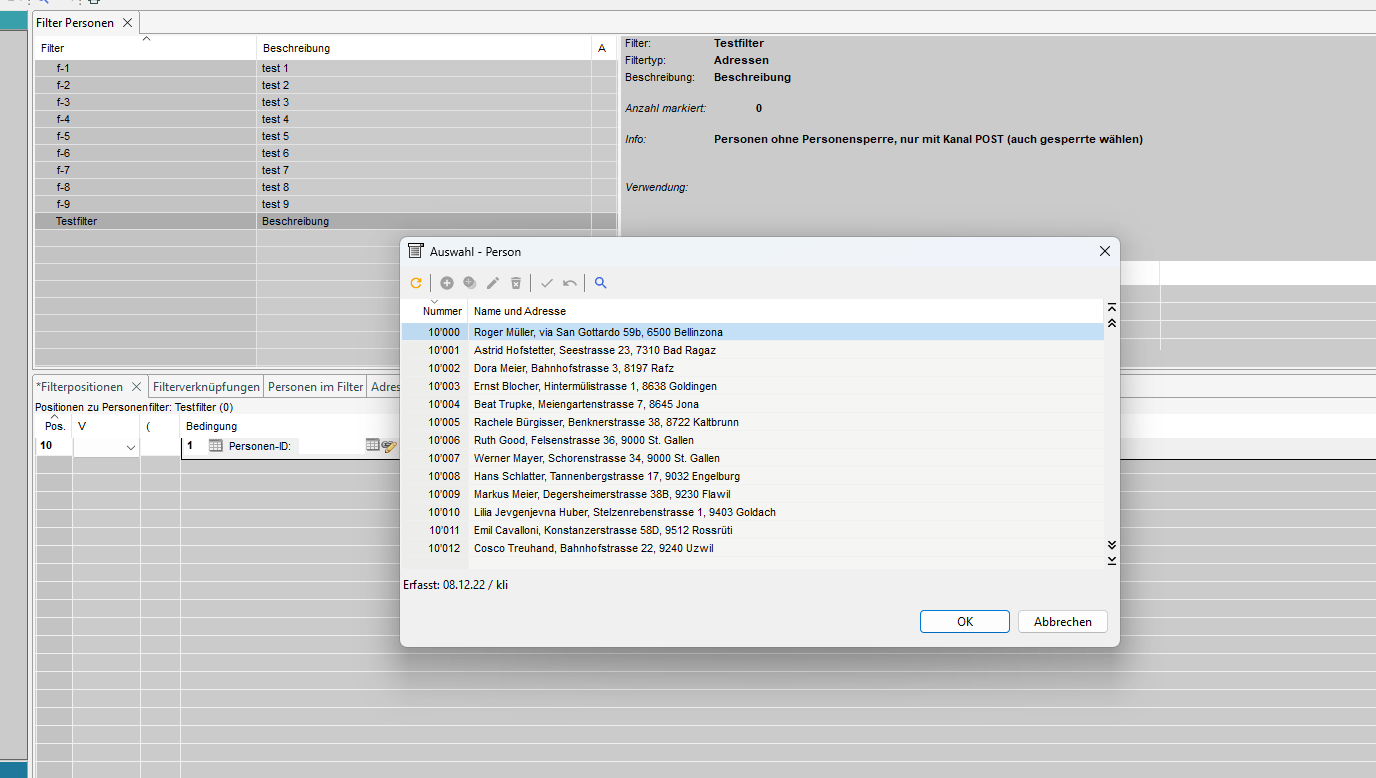 2. Filter Kopf erfassen/mutieren (Filtertyp = Adressen)