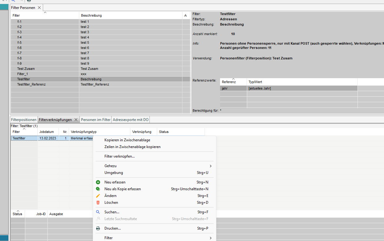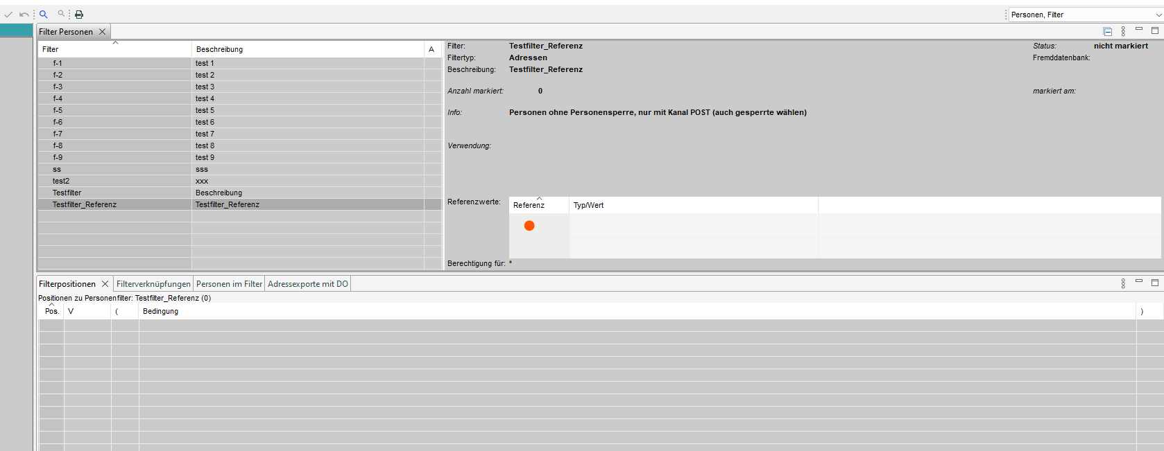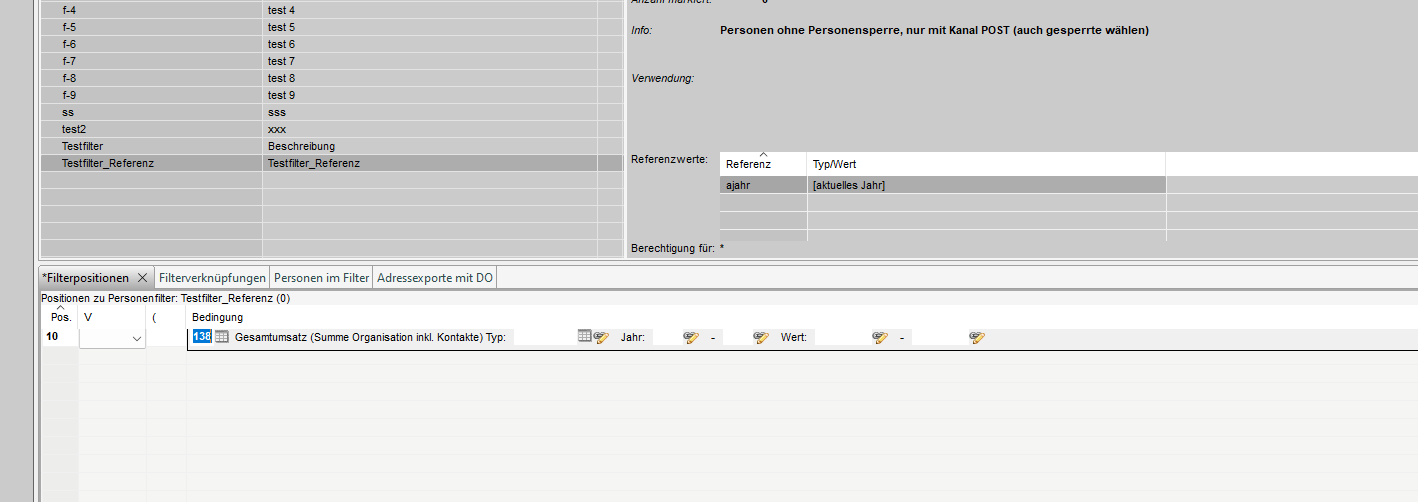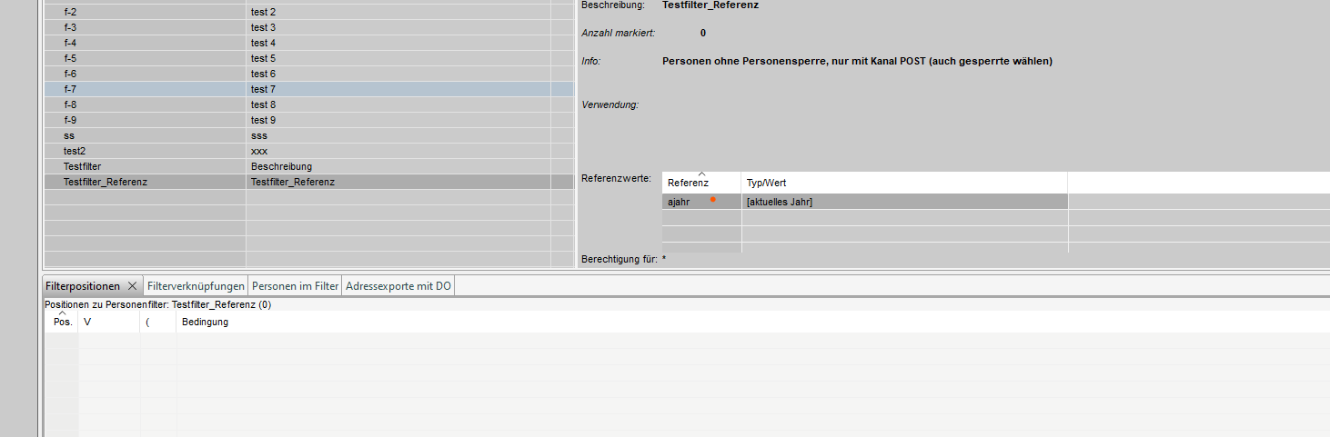 2. Filter Kopf erfassen/mutieren (Filtertyp = Adressen)