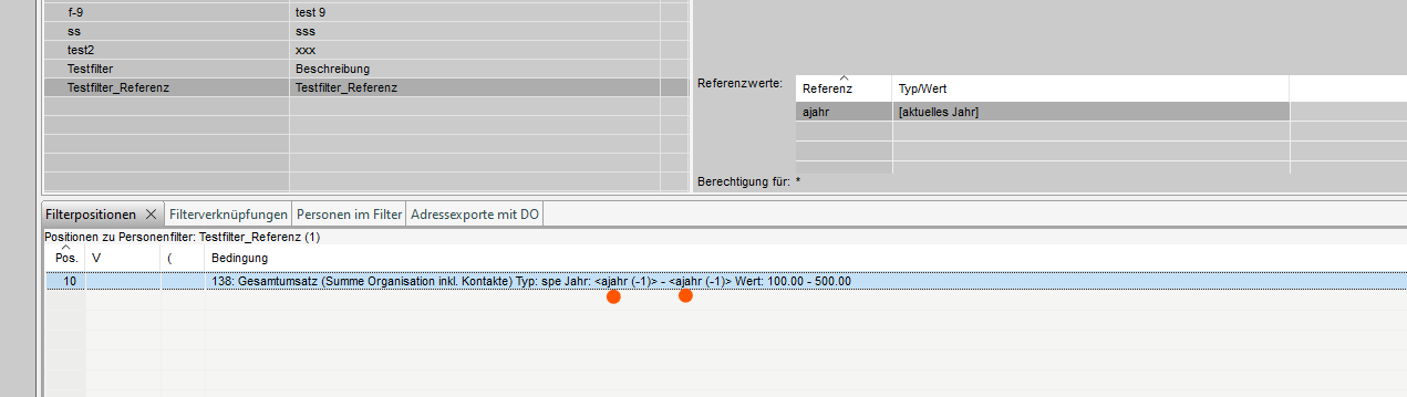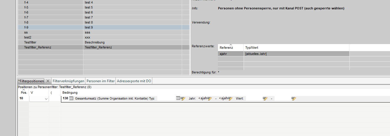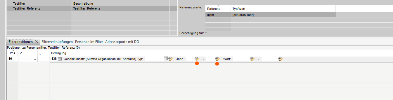 Der nächste Schritt besteht darin, eine Filterposition zu erstellen, wobei zum Beispiel der Umsatz des Jahres als Kriterium verwendet wird. Dies ist zum Beispiel die Position 138 (Gesamtumsatz im Jahr von-bis, mit dem Wert von-bis).