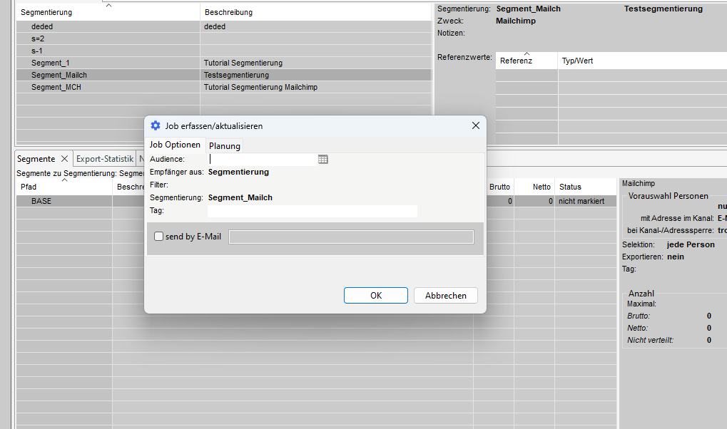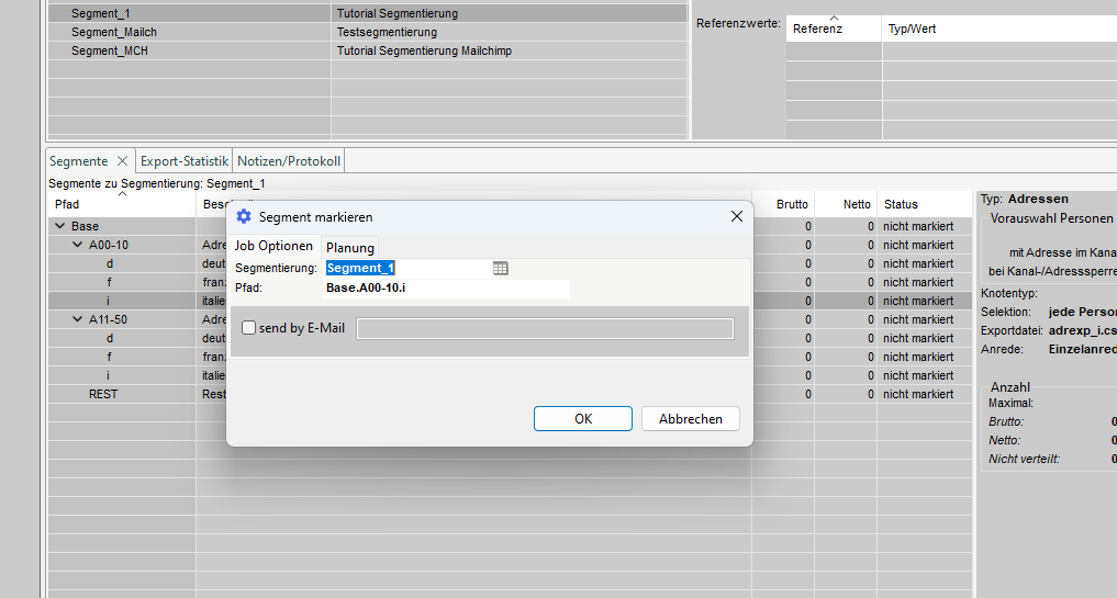 - Segmentierung - der Name der Segmentierung, die verarbeitet werden soll