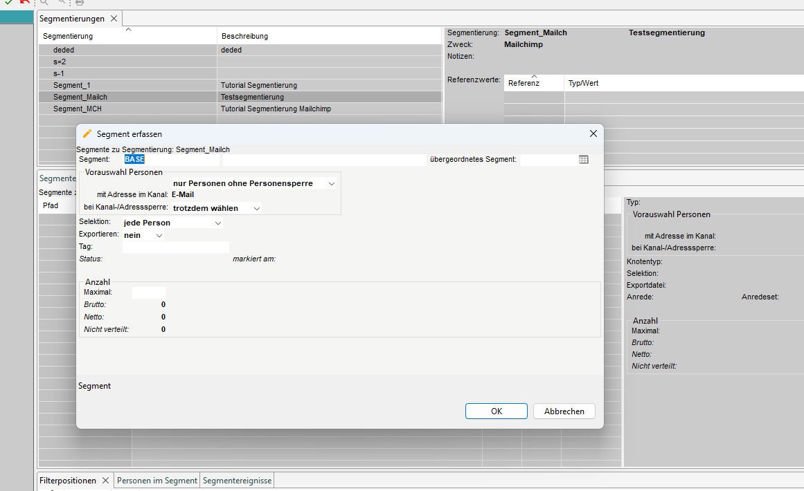 - Name und Beschreibung der Segmentierung
