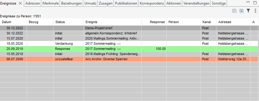 - Adressliste nach Umsatztyp, Response und Zeitraum