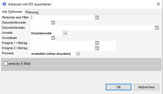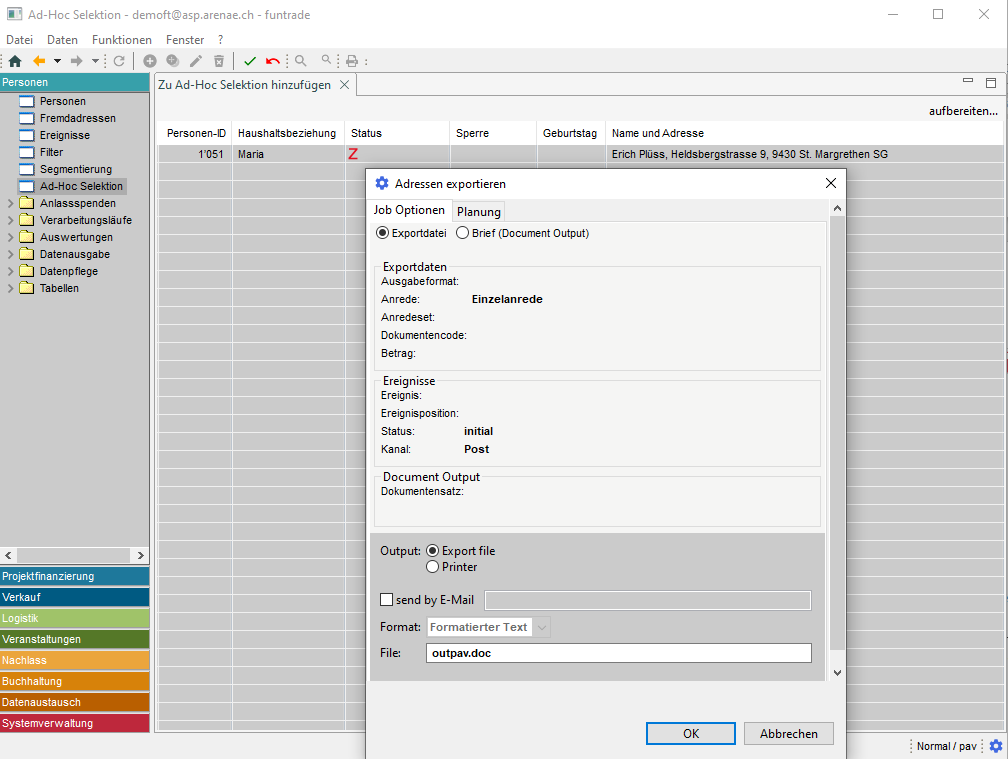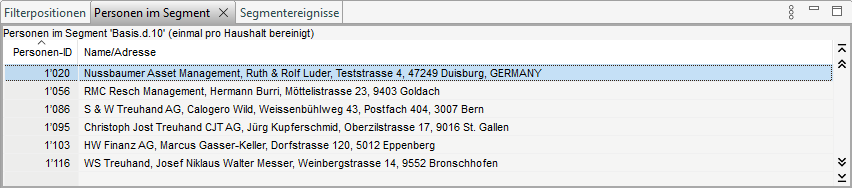 Die Personen in der Liste lassen sich dann für weitere Schritte nutzen, z. B. zum Expor über einer Datei mit vordefiniertem Export-Format oder zur Erstellung eines Briefs mit Document Output.