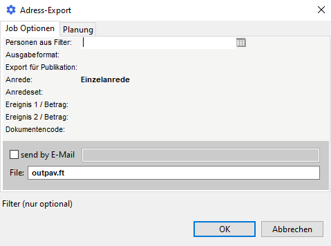 Die Ausgabe bietet die Möglichkeit, Personen nach einem vordefinierten Filter zu drucken. Es stehen verschiedene Formate zur Auswahl: