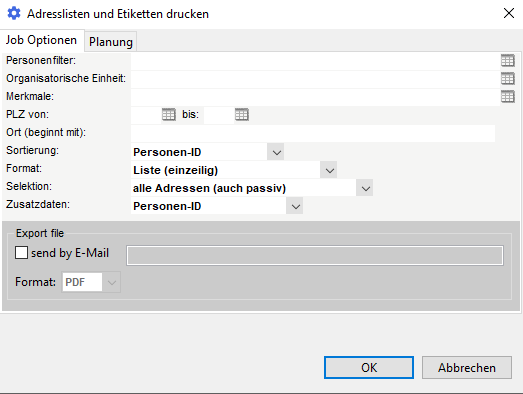 Mit diesen Tools lassen sich Personendateien drucken, verschiedene Dokumente vorbereiten oder konkrete Personendatenfelder in verschiedenen Formaten exportieren und am dritte Seite liefern, z. B. bei Mailings Excel Liste für Druckerei.