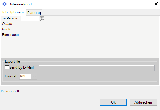Mit Datenauskunft lässt sich eine detaillierte Info über Personen auflisten. Es geht dabei um ein nicht benutzerdefiniertes Format. Informationen sind aber detailliert. Der Ausdruck ist aufs Mal nur für eine Person möglich.
