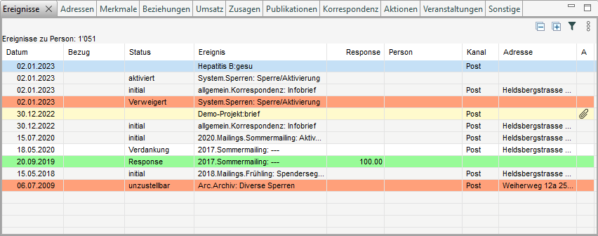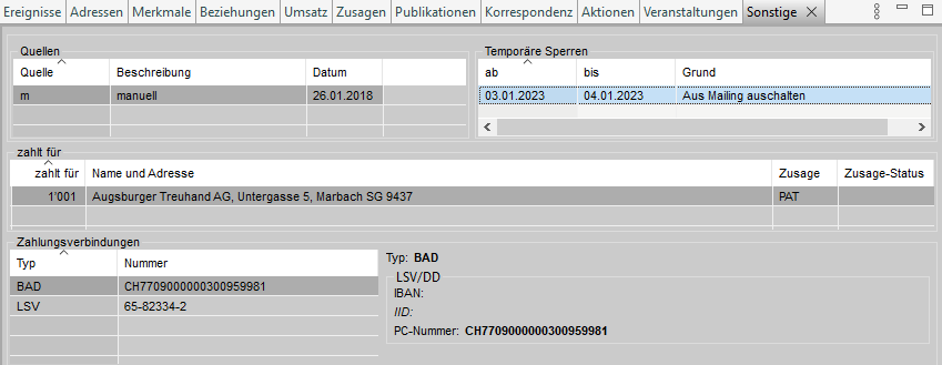 Für gesperrte Personen lassen sich keine Mailings erstellen, Publikationen schicken etc.