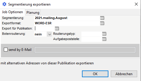 Dieser Job kann mit 5 Optionen, die sich stark unterscheiden, gestartet werden.