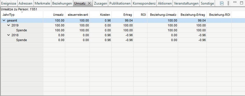 - Umsatz nach Projekten, Ereignissen, Personengruppen