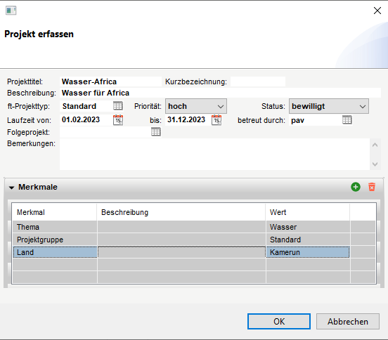 - Merkmale – Liste der Merkmale, die mit dem Projekt verlinkt sind.