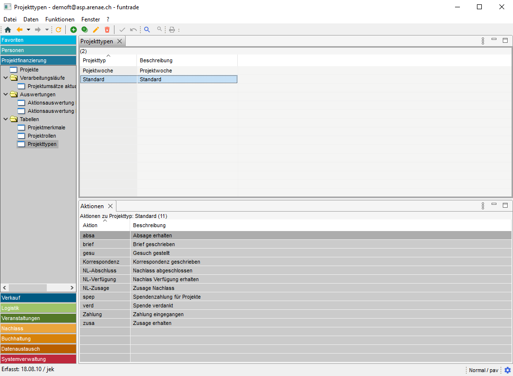- Aktionen – Liste alle Aktionen, die waren zum Projekt erfasst.