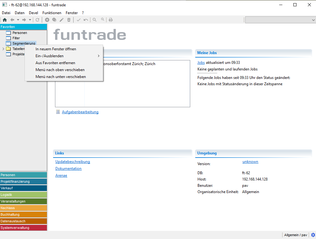 Neu lassen sich einzelne Menüpunkte im Favoritenmenü nach oben oder unten verschieben über die Funktion im Kontextmenü. So lassen sich im Menü Favoriten die Menüpunkte individuell anordnen.