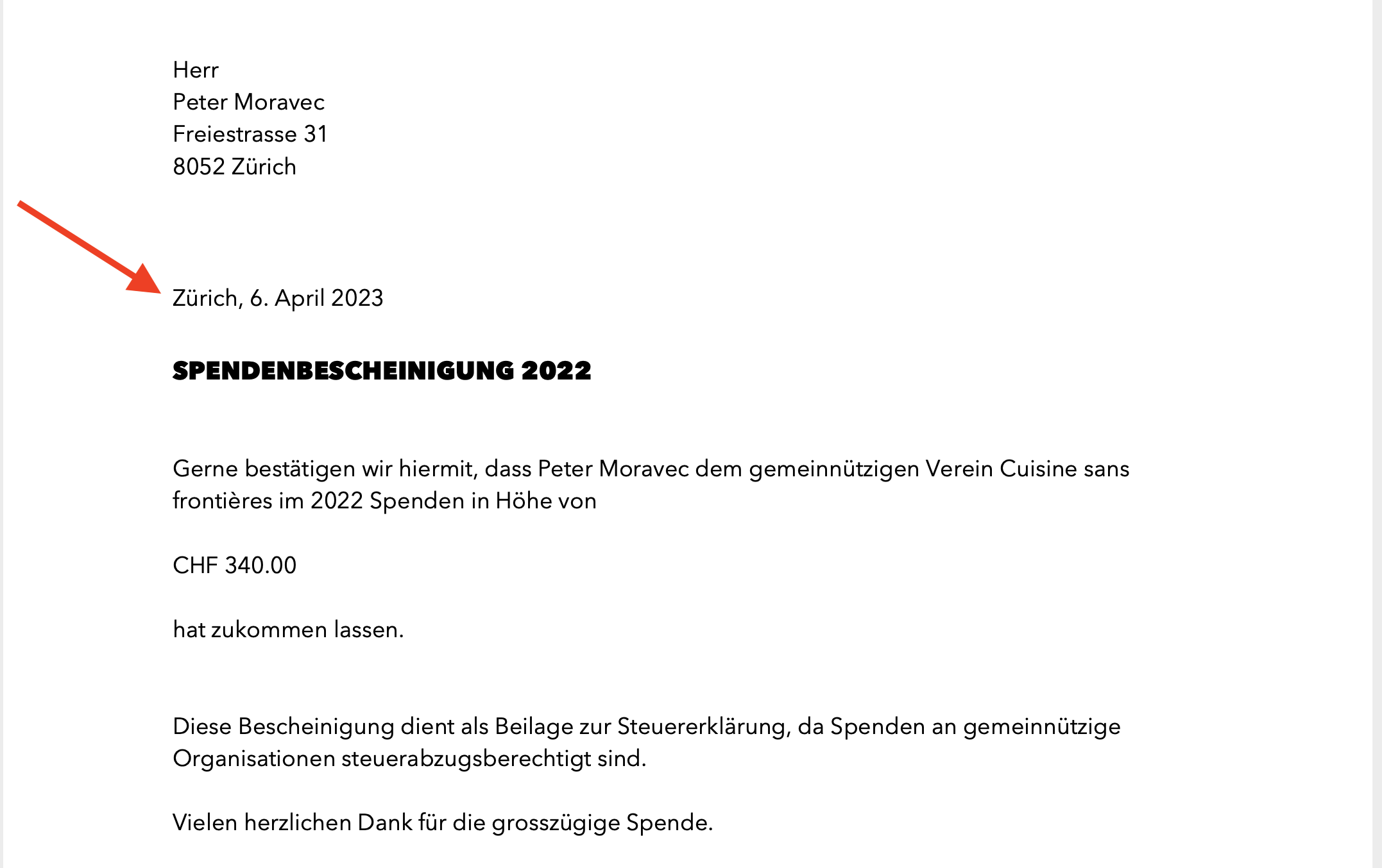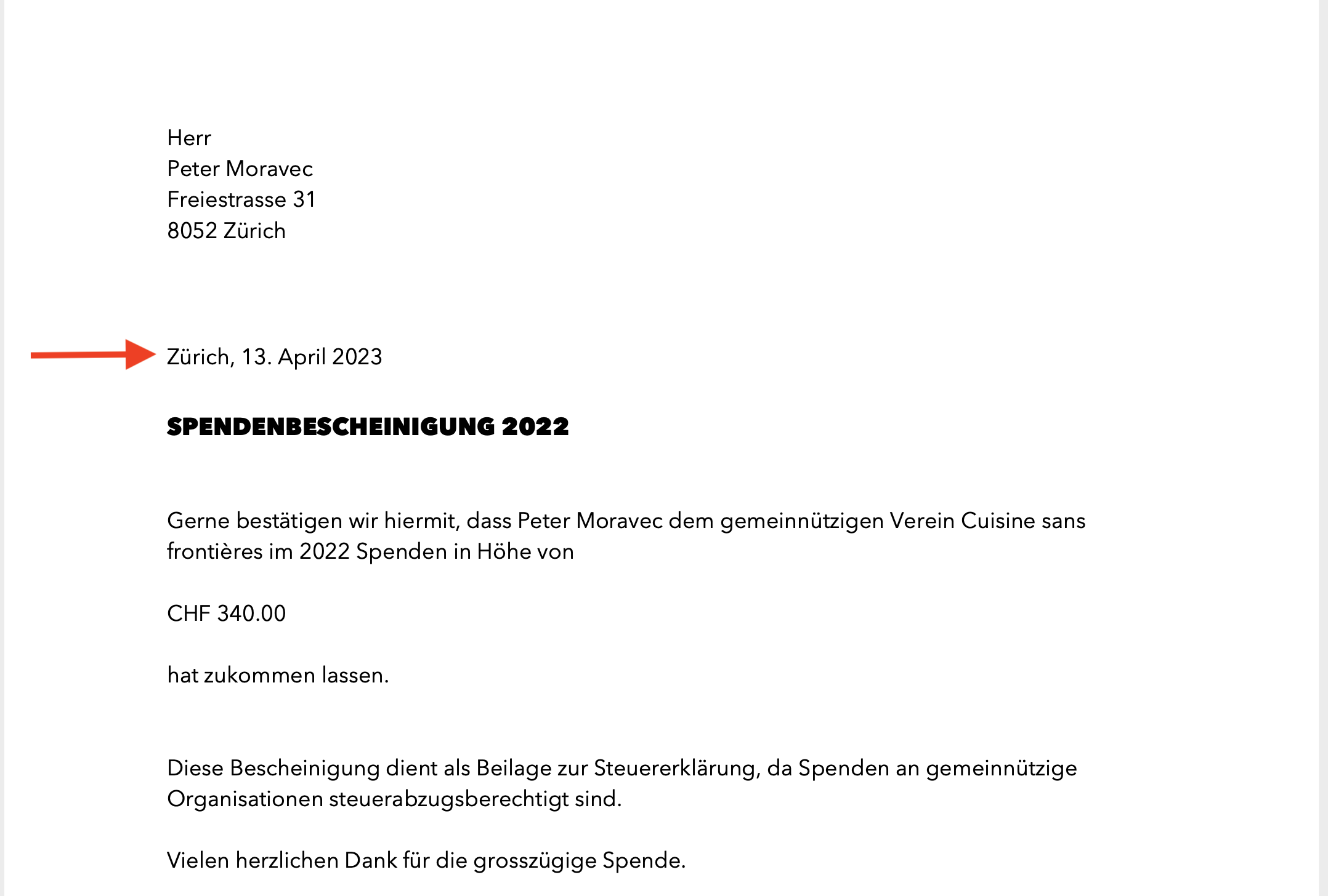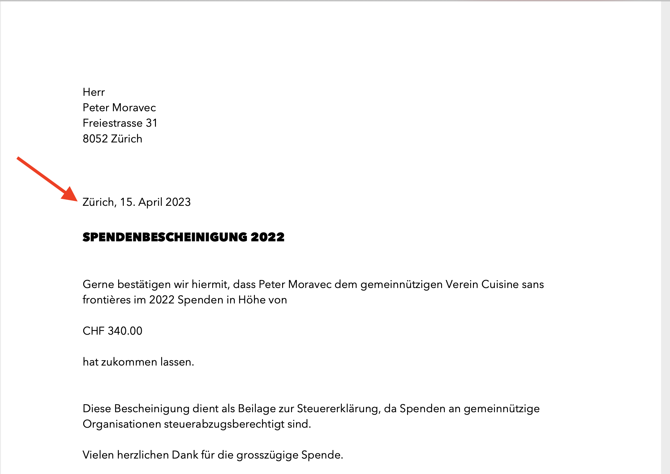 Schritt 3: Dieses frei wählbare Datum wird im personalisierten Dokument abgebildet.