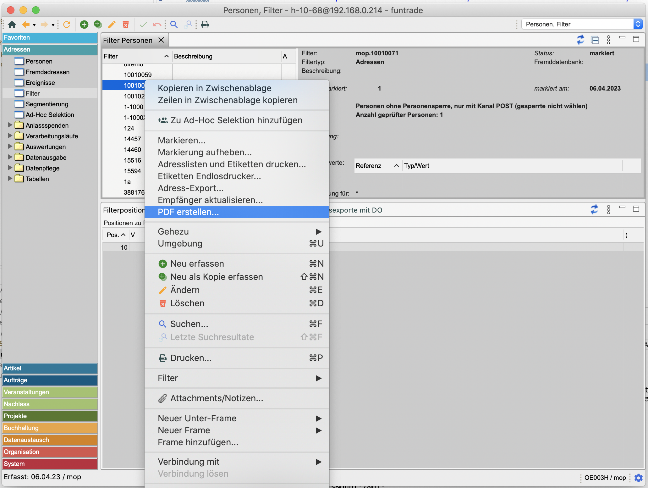 Schritt 1: Im Filter «PDF erstellen» wählen.