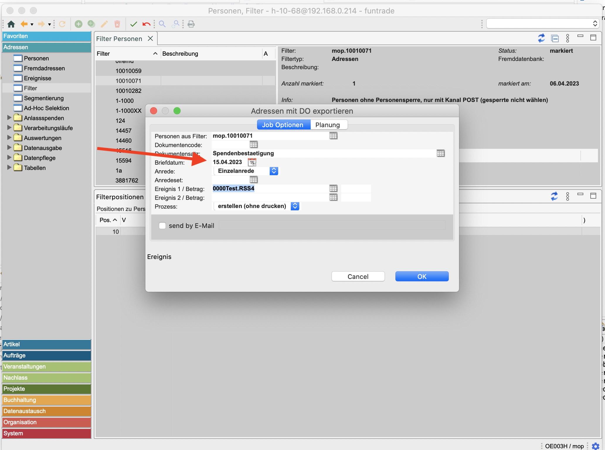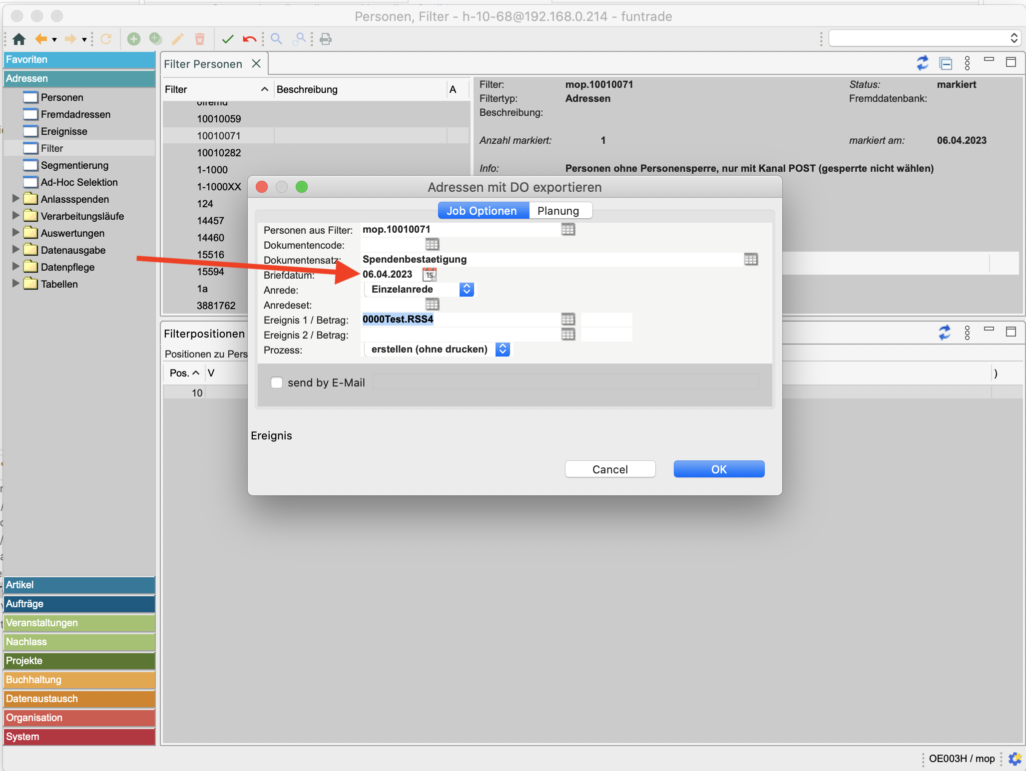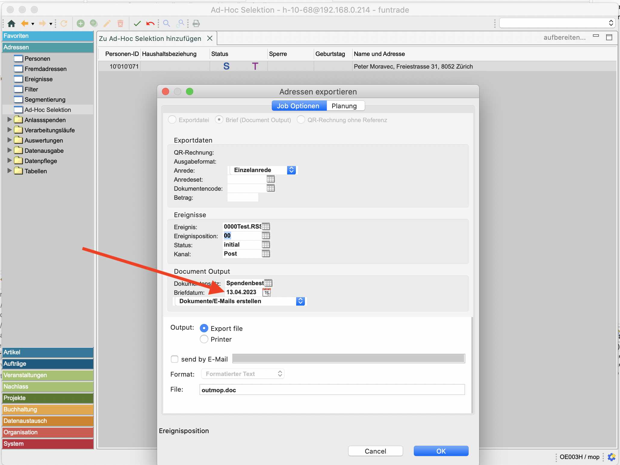 Das Briefdatum lässt sich neu auch bei Ad-Hoc Selektion frei wählen.