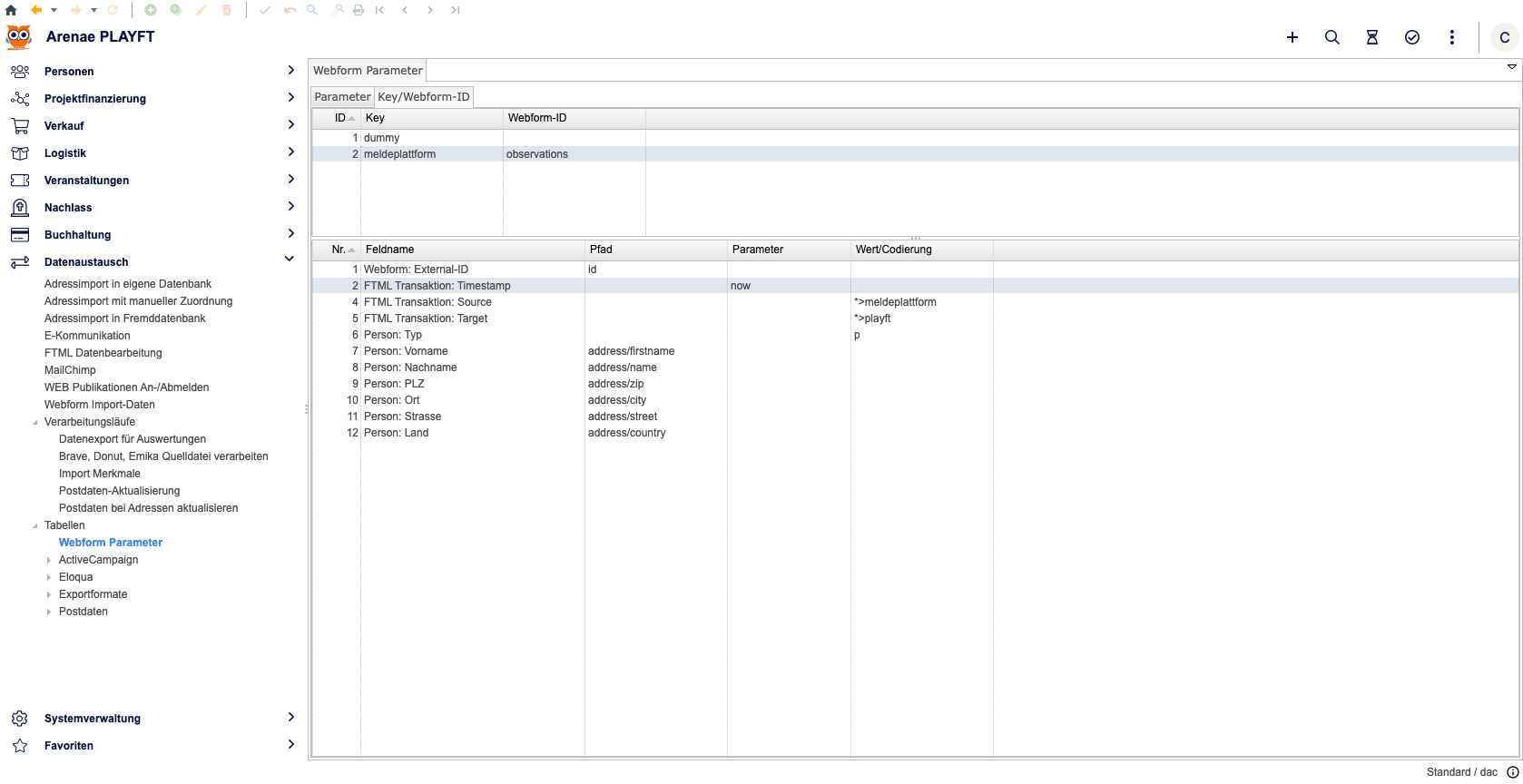 - ohne Personentreffer: funtrade erstellt eine neue Person mit den gegebenen Daten und hinterlegt die definierten Daten