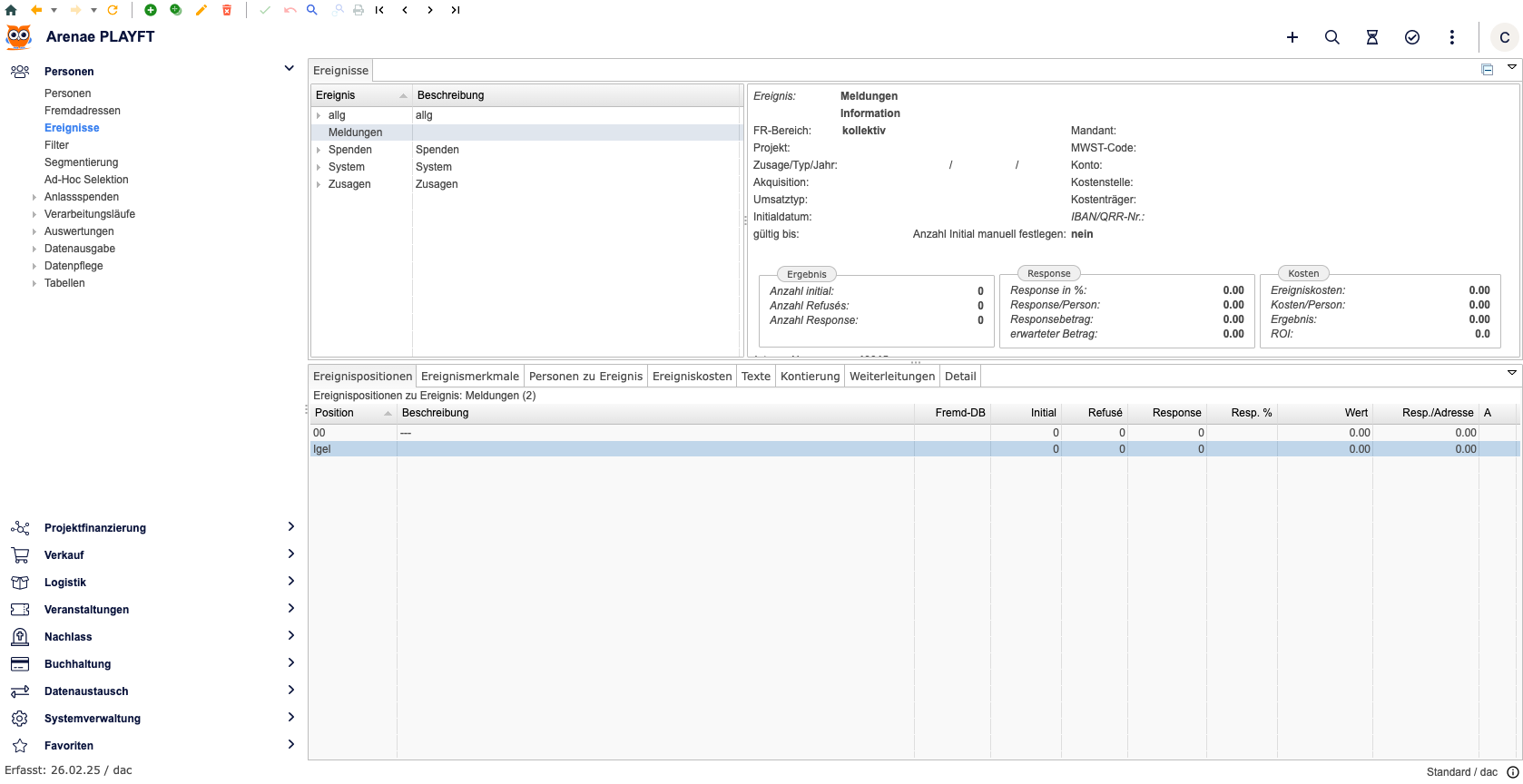 Für unser Beispiel erstellen wir ein neues Ereignis Meldungen mit einer Ereignisposition, um den Igel separat zu zählen. Grundsätzlich kann aber mit einer generischen Position gearbeitet werden.